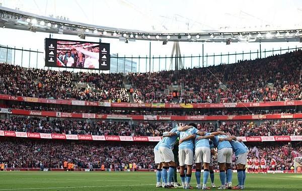 瓜迪奥拉的首发11人赛前聚集在一起,围成一圈,准备开球,但他们却站在了客队看台的正前方,这种情况以前从未发生过,显然是在角旗附近向球员们下达最后的指示。